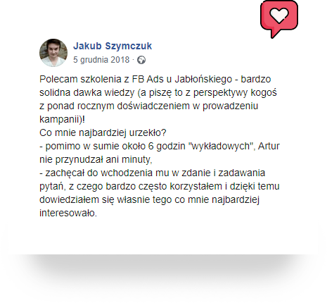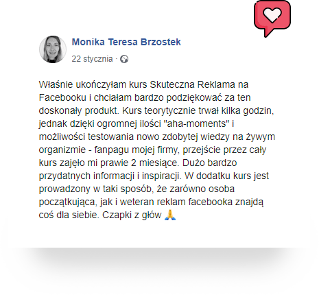 Kursanci są na bieżąco z każdą ważną zmianą algorytmu reklamowego czy nowymi ciekawymi funkcjami.